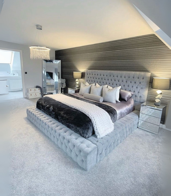 The Luxury Parklane Deluxe Bed is a masterpiece of bedroom design, offering unparalleled comfort and style. This exquisite bed features a distinctive chesterfield-style headboard, upholstered in the finest fabrics, and crafted with precision to create a truly luxurious sleeping experience.